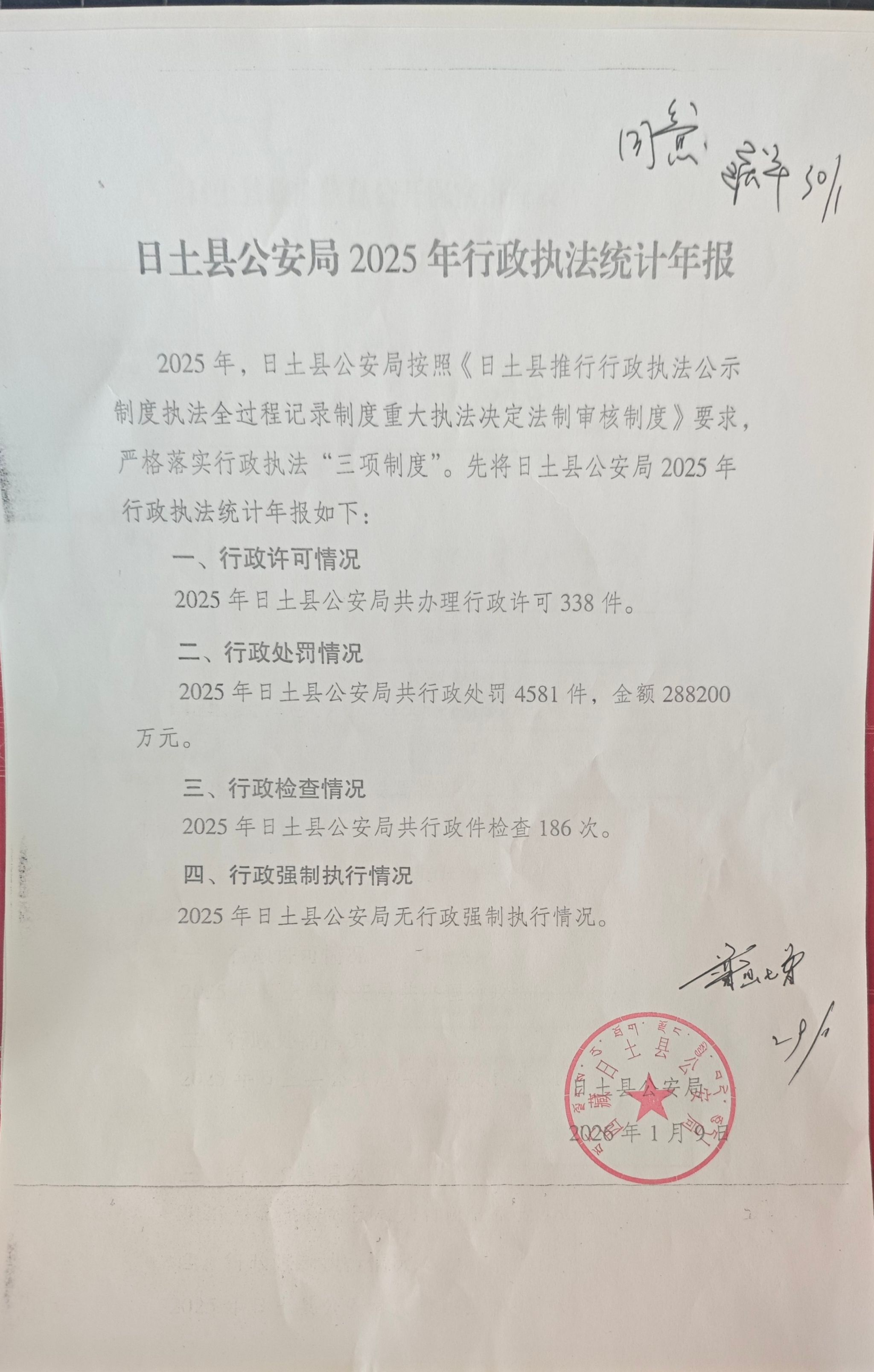 日土县公安局2025年行政执法统计年报