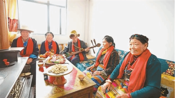 拉孜县热萨乡强公村群众在新居内共度重阳佳节