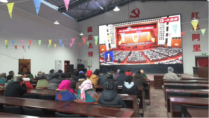 3月5日上午9时,十四届全国人大四次会议在北京人民大会堂隆重开幕。日土县组织各族干部群众通过多种形式收听收看开幕会盛况,第一时间学习领会会议精神。