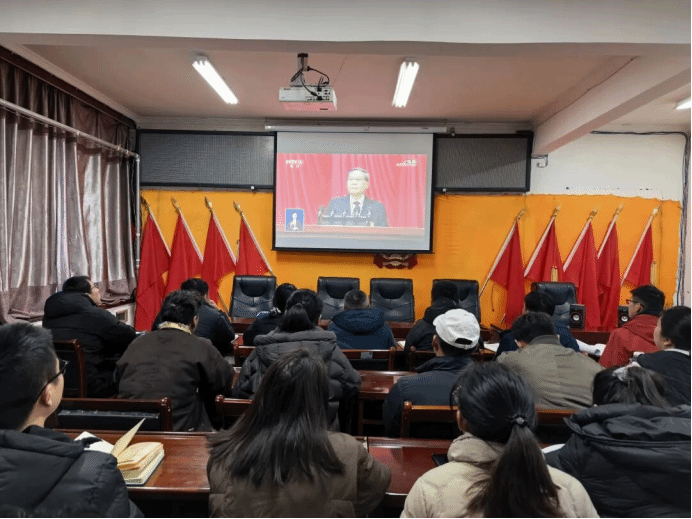 在县指挥中心,西藏自治区人民检察院阿里分院党组书记、检察长冯智奇,日土县委书记达瓦次仁,县委副书记、政府县长曹甲伟,县委副书记江波,县委常委、政府副县长洛桑旦增等在家县级领导,以及部分县直单位负责人集中收看了大会直播。